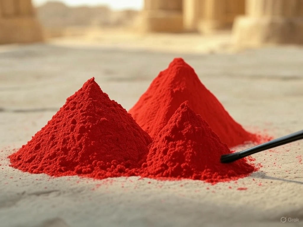 Bir diğer önemli kaynak ise cıva sülfürden (sinobar) elde edilen parlak kırmızı pigmentti. Antik Çin’den Roma’ya kadar uzanan medeniyetlerde sinobar, hem boya hem de ritüel objelerde kullanılıyordu. Organik kaynaklar arasında ise kırmız böceği (cochineal) gibi böceklerden elde edilen boyalar dikkat çeker. Özellikle Mezopotamya ve Mısır’da tekstil boyamada kullanılan bu maddeler, lüks ve statü sembolüydü.